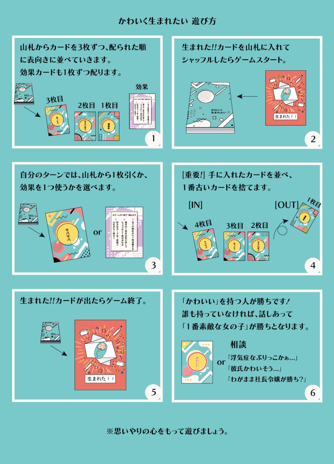 「かわいく生まれたい」は2~4人向けのパーティカードゲームです。